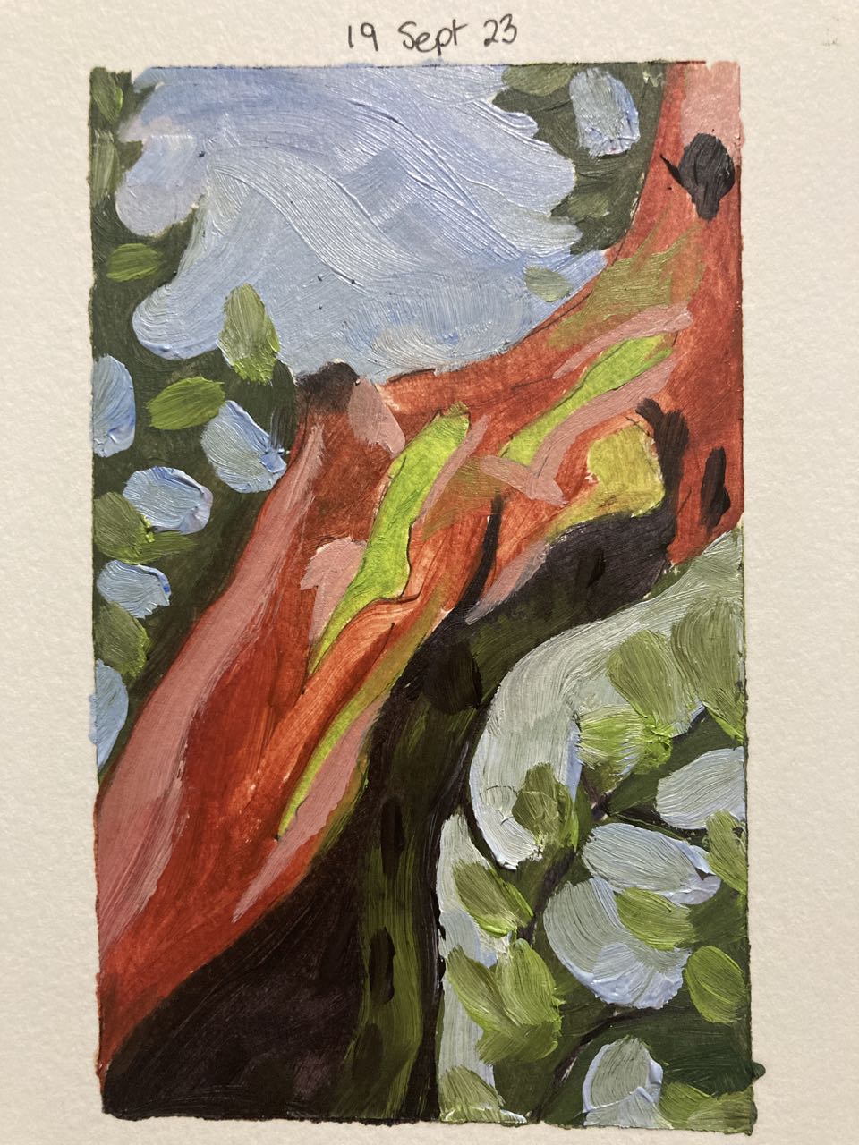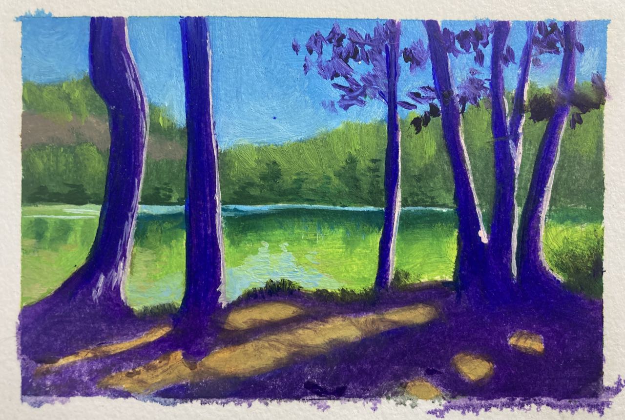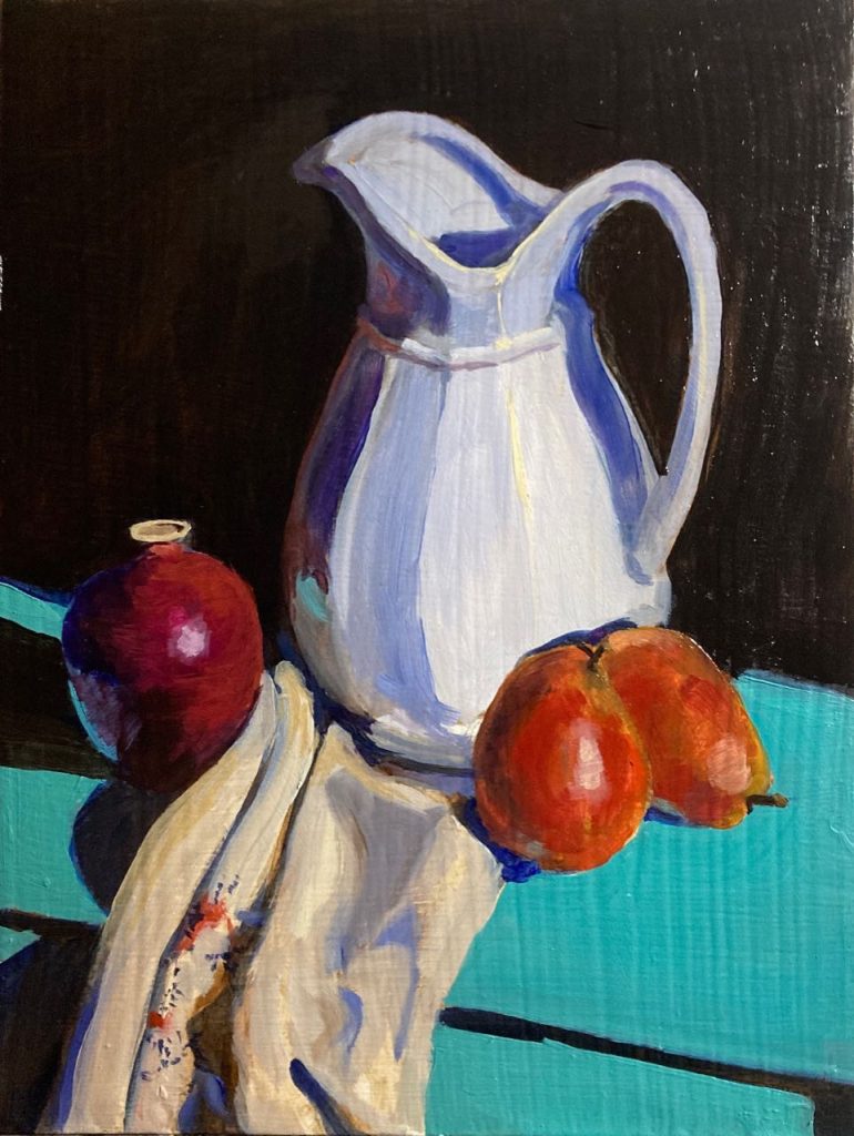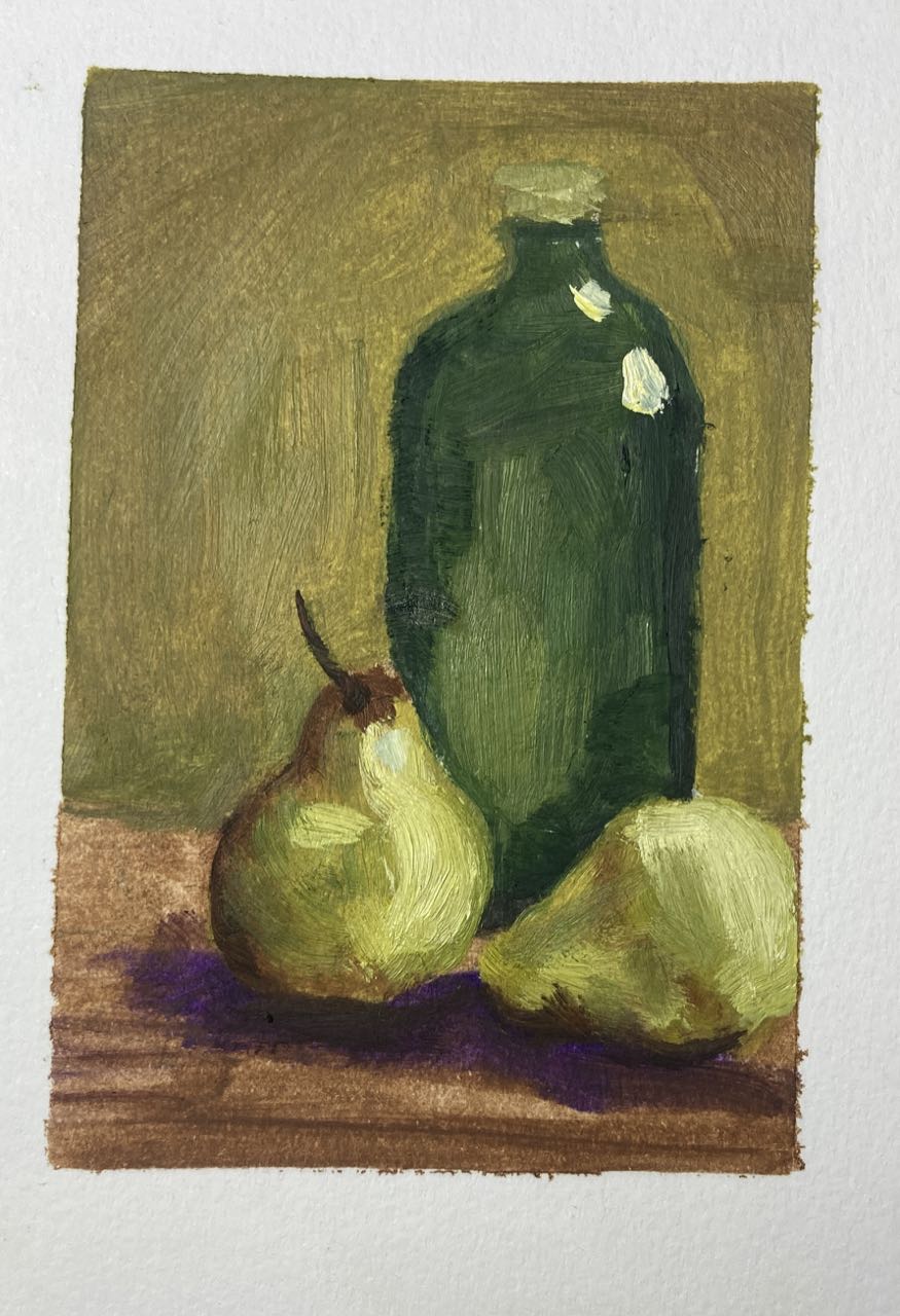 Now that the class is over I’m finding it difficult to keep up with the oil painting practice. I SHOULD just dig it out and paint something every day. But I seem to have a mental block where I think of oil painting as ‘hard’ or ‘time consuming’ and have trouble getting started with it. I think this is mostly in my head because aside from needing to clean the brushes I don’t think it really takes all that much time. Still – it’s a barrier. But I don’t seem to have the same problem with ink sketches and watercolor. Or it might be that I consider ink and watercolor to be ‘doodling’ and ‘not serious’ and therefore I don’t feel the need to be as precise. It somehow doesn’t count for me and I’m more willing to let it be flawed.