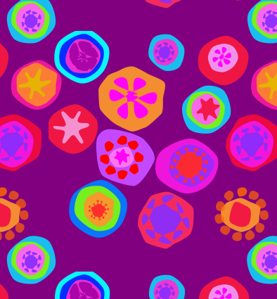 Just messing around with Inkscape again. There is a glass technique called “millefiori” that means “thousand flowers” and this is my (incomplete) attempt to recreate that look.