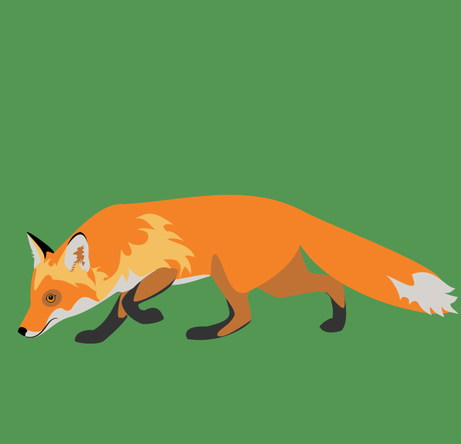 Instead I made another color-block fox. This time I tried to use simpler lines, but I may need to ‘cartoonify’ him even more to get him to fit the scene. Still, I like him.