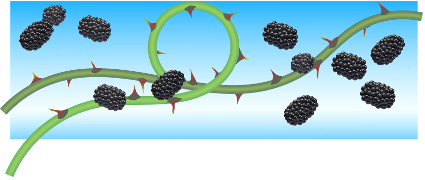 I spent a surprisingly long time arranging the berries. I may still go back and add the little hairs to them and possibly a shadow. It may not be noticeable, but each berry is a slightly different color because I wanted to make it clear that they were distinct even when they were on top of each other like this.