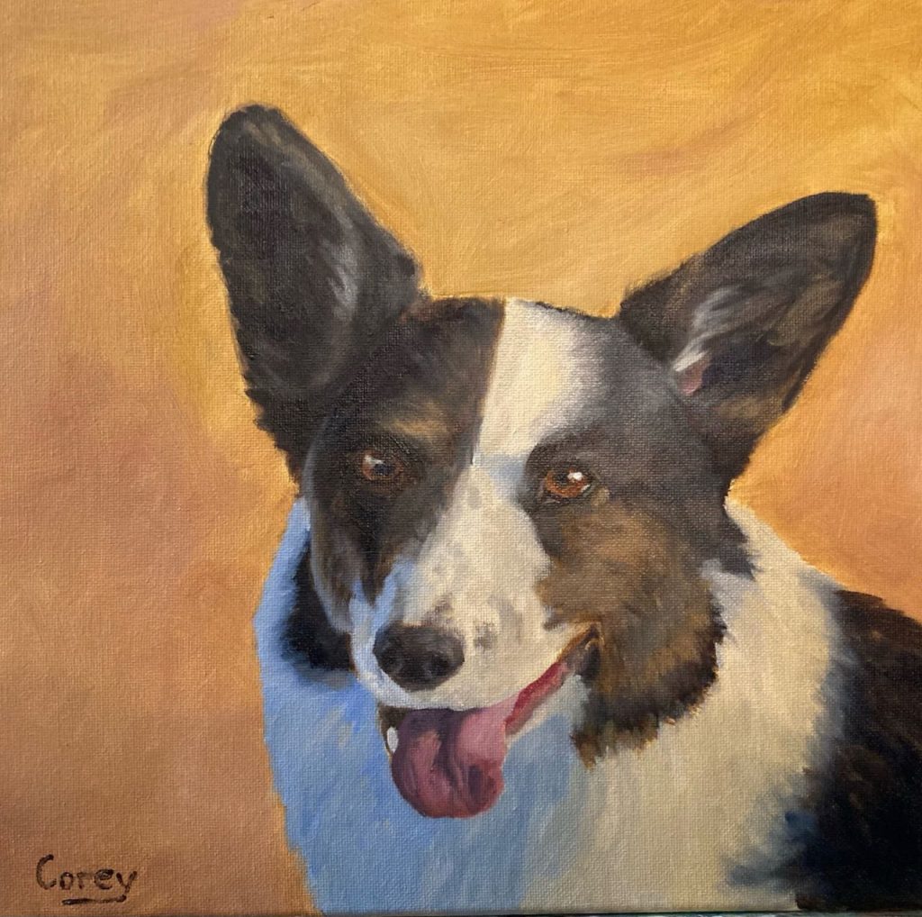 I’ve been hesitant to try animals because they are less forgiving than still life, but Pippin is just too cute. Here’s my dog in 12″x12″ oil.