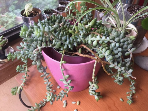 This burros tail had lots of fallen ‘leaves’ that were rooting. I gave them pots.