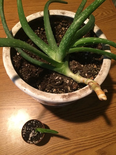 This aloe was getting a weird curly stem. Trimmed it back and potted the pup.