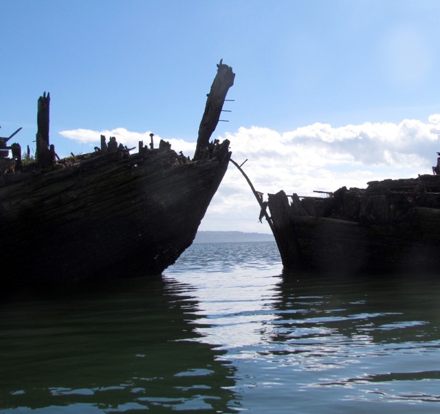 I mentioned the abandoned ships north of Jetty Island recently and discovered that a friend had never noticed them before. They were sunk to try to divert water in the channel back when ‘they’ were trying to turn the Snohomish south to make Everett a freshwater port. That failed, but the ships remain.