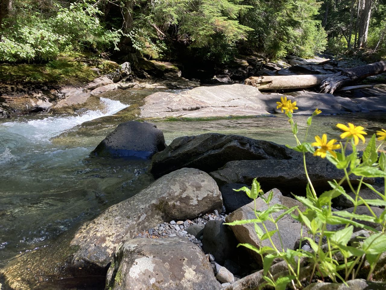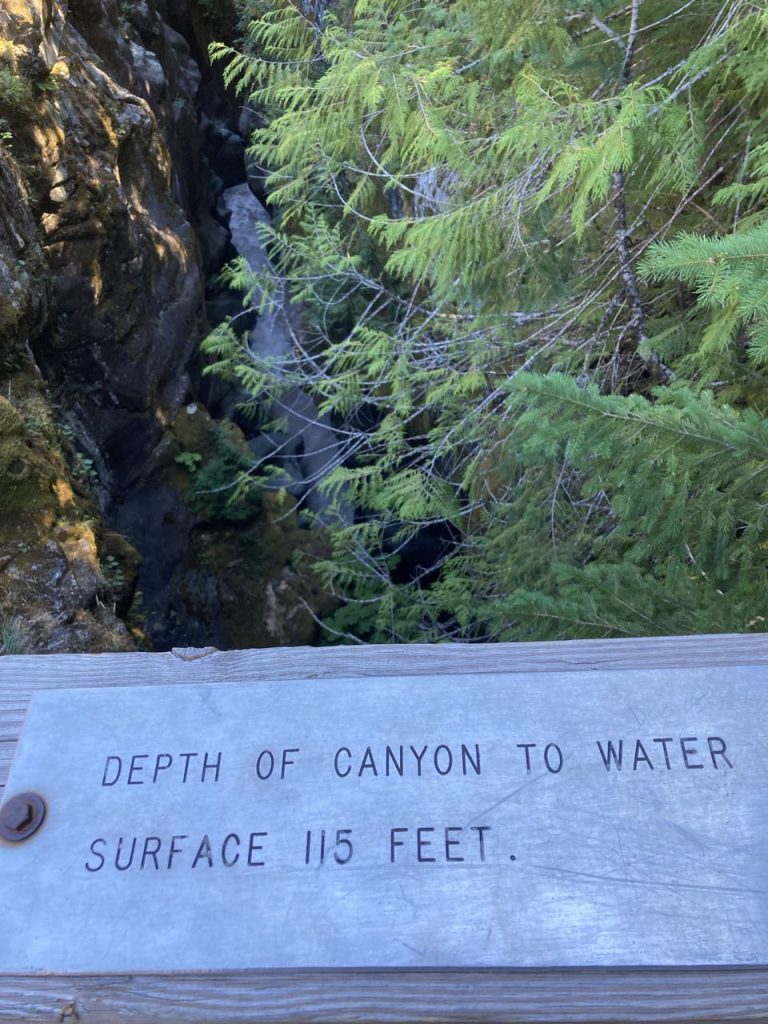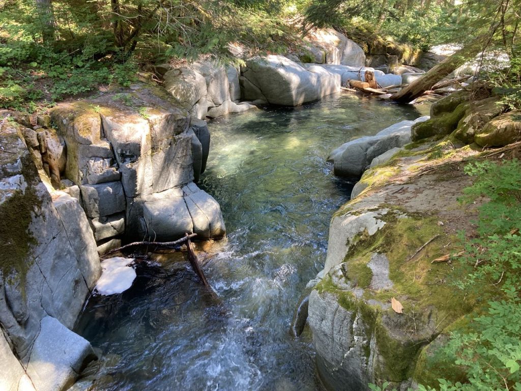 The good: waterfalls with narrow steep sides, reflection lake, Box Canyon, Sylvia Falls, Martha Falls. There was a bathroom with flush toilets and a sink!