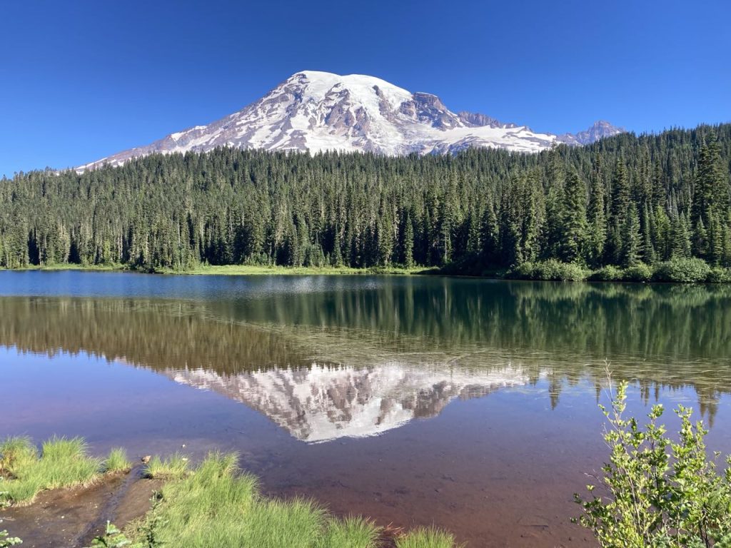 Our destination was Nickel Creek, a short way past Box Canyon, which is one of the potential trailheads for those starting on the Wonderland Trail. That means it has some facilities and parking. If I was going to bail because of my ankle, Box Canyon was my last chance. I decided that I could just take a little more naproxen and it’d be good despite being a little concerned about our upcoming 12 mile day. The day started cold but then warmed up so by the time we got to reflection lake I wanted to change my shirt. The problem is that it’s right by the main road and tourists kept walking up. I just tried to be quick about it.