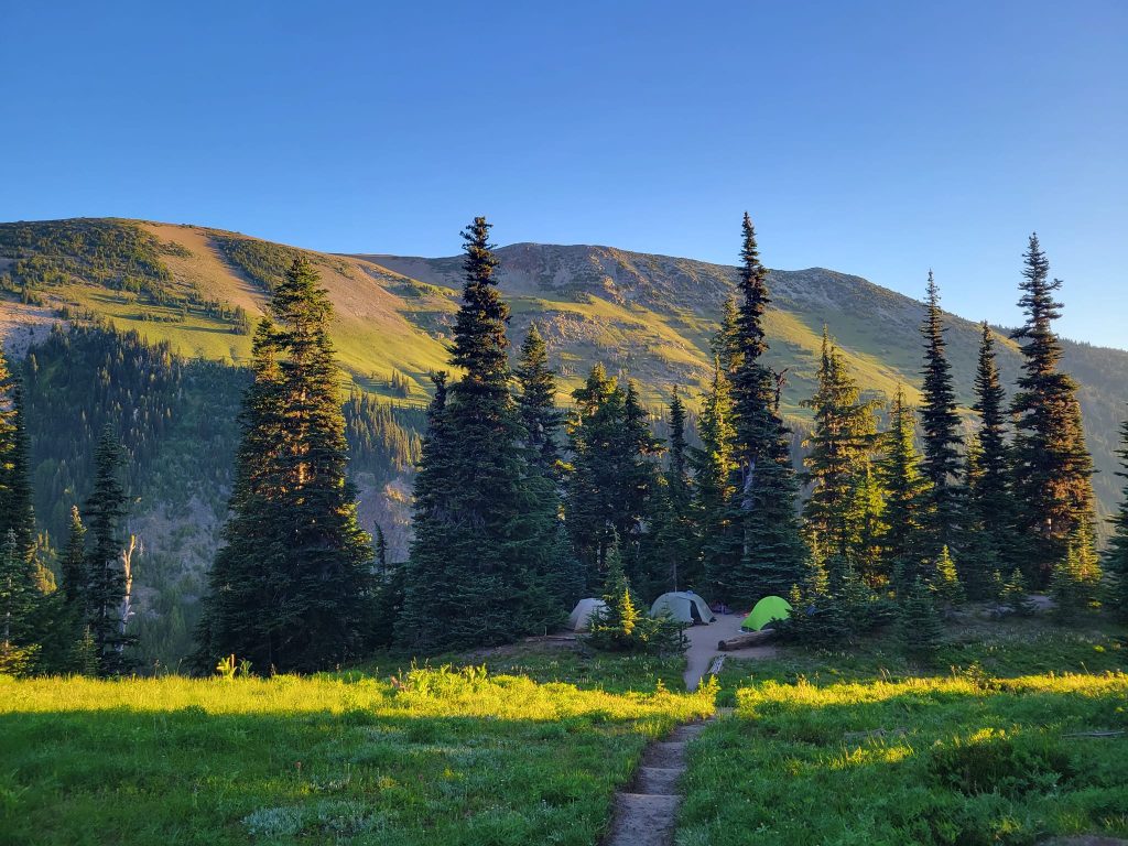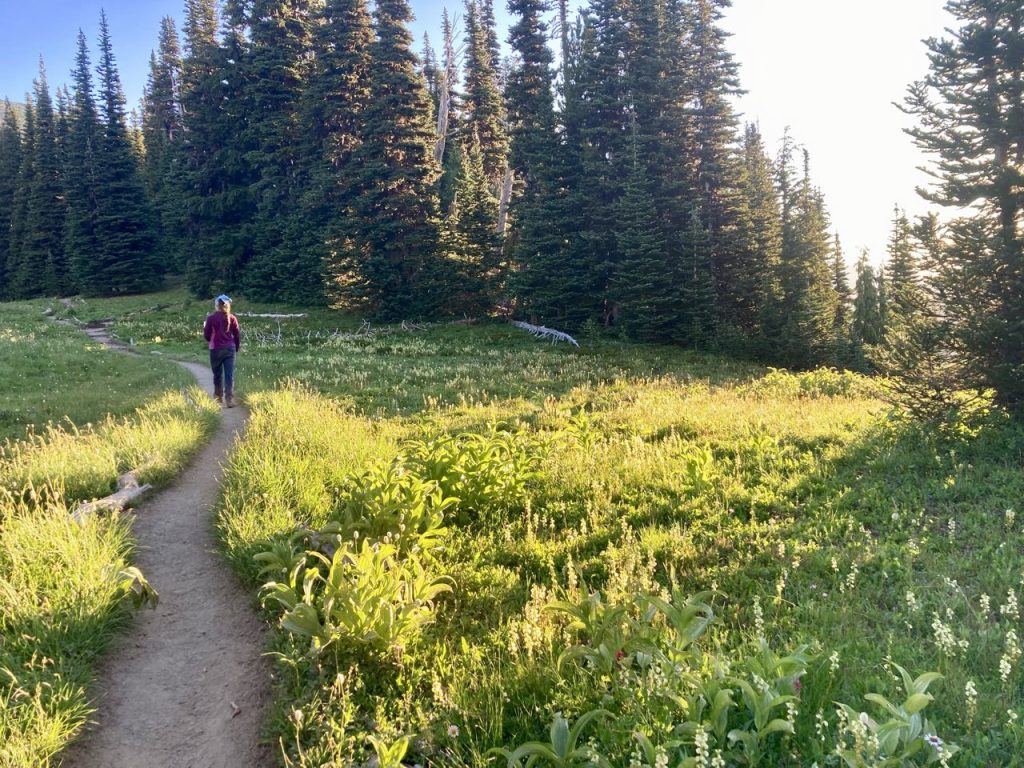 Highlights: swimming in alpine lakes many times when it was hot. Snacking on huckleberries for miles and miles. Finding out that the scary water crossing we were warned about was easy. The Kendall Katwalk was not as scary as I worried but the section north of it was.