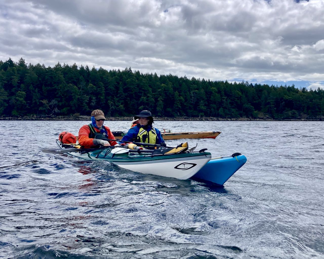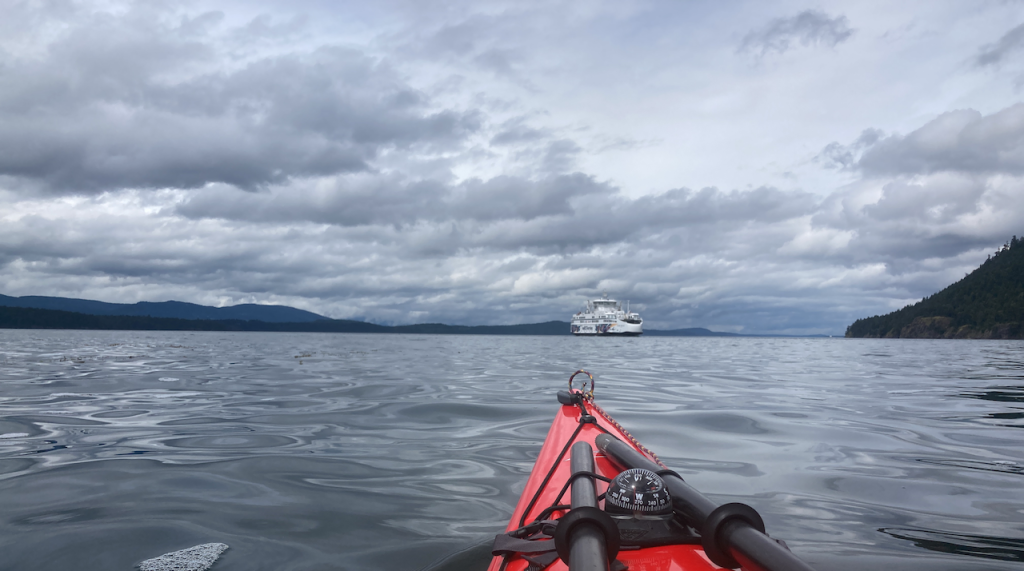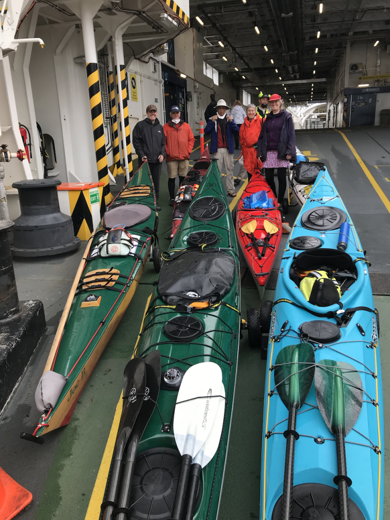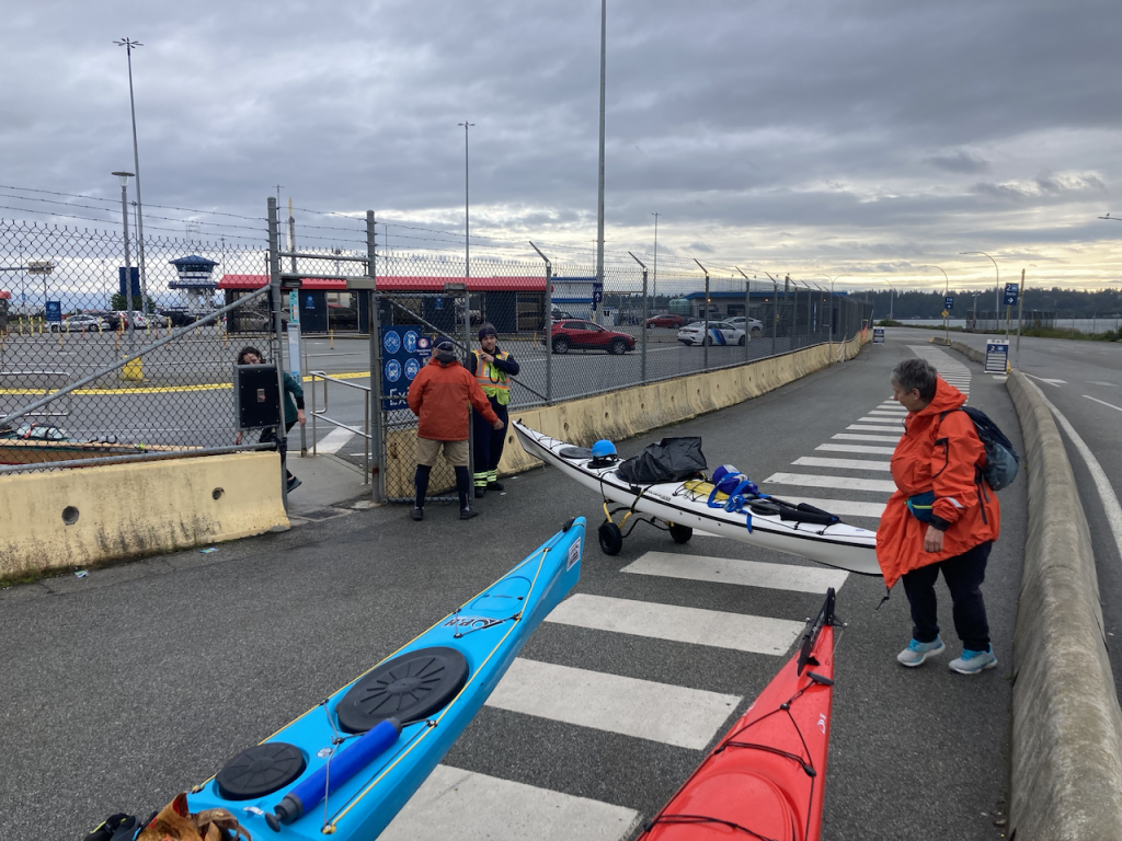 We met at 4AM to make sure we could cross the border at 6, and arrive in plenty of time to figure out how to unload, get the kayaks on wheels, figure out where long term parking was, and get ourselves onto the 9:20 ferry. This all went relatively smoothly except for the part where I was randomly selected to take a Covid test at the Canadian border. That seems simple enough, right? I’ll just do the swab in the car, box it up and drop it in the post before I get on the ferry. Ah… how optimistic of me! While reading the instructions I was able to gather that they wanted me to register online (okay, did that), then I have to install some video software because they want to WATCH me do the swab. Then I’m supposed to book an appointment online. I decide I can’t think about this right now because we have to unload.