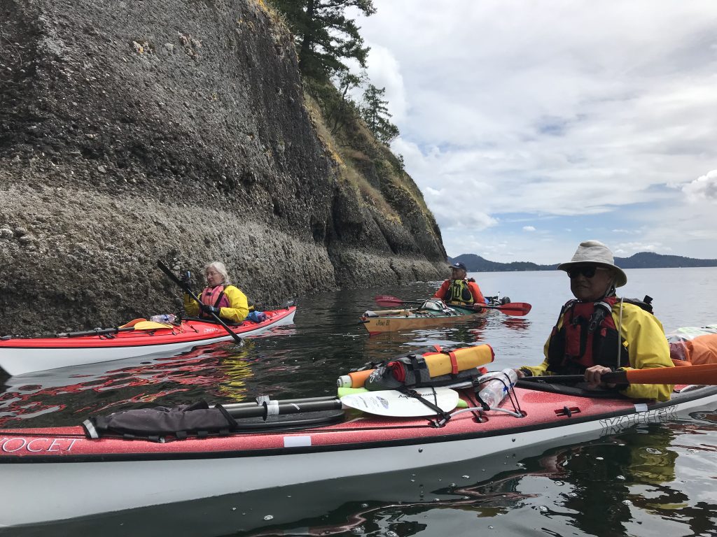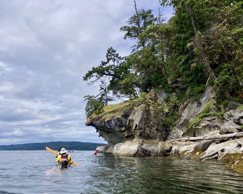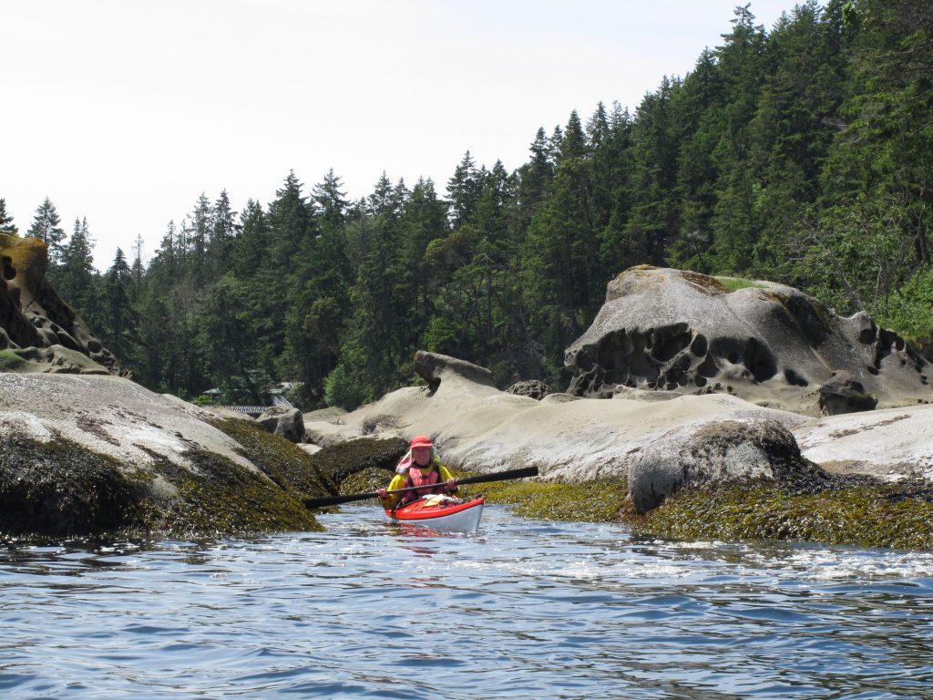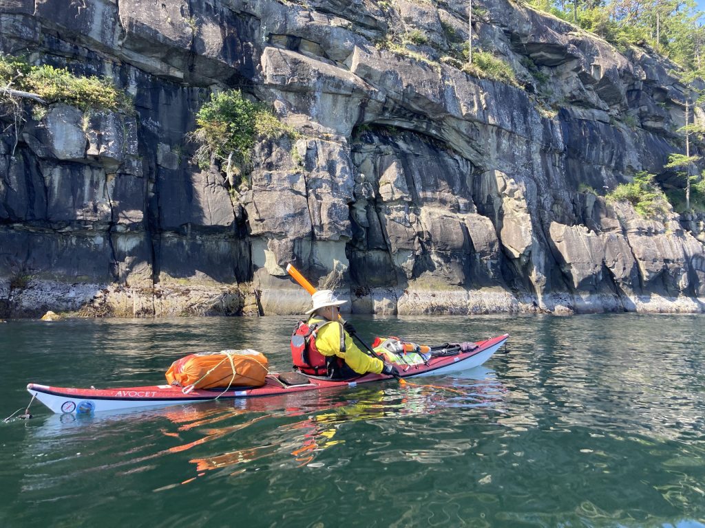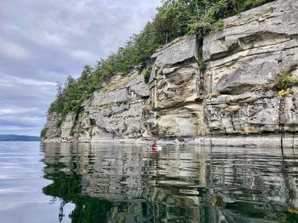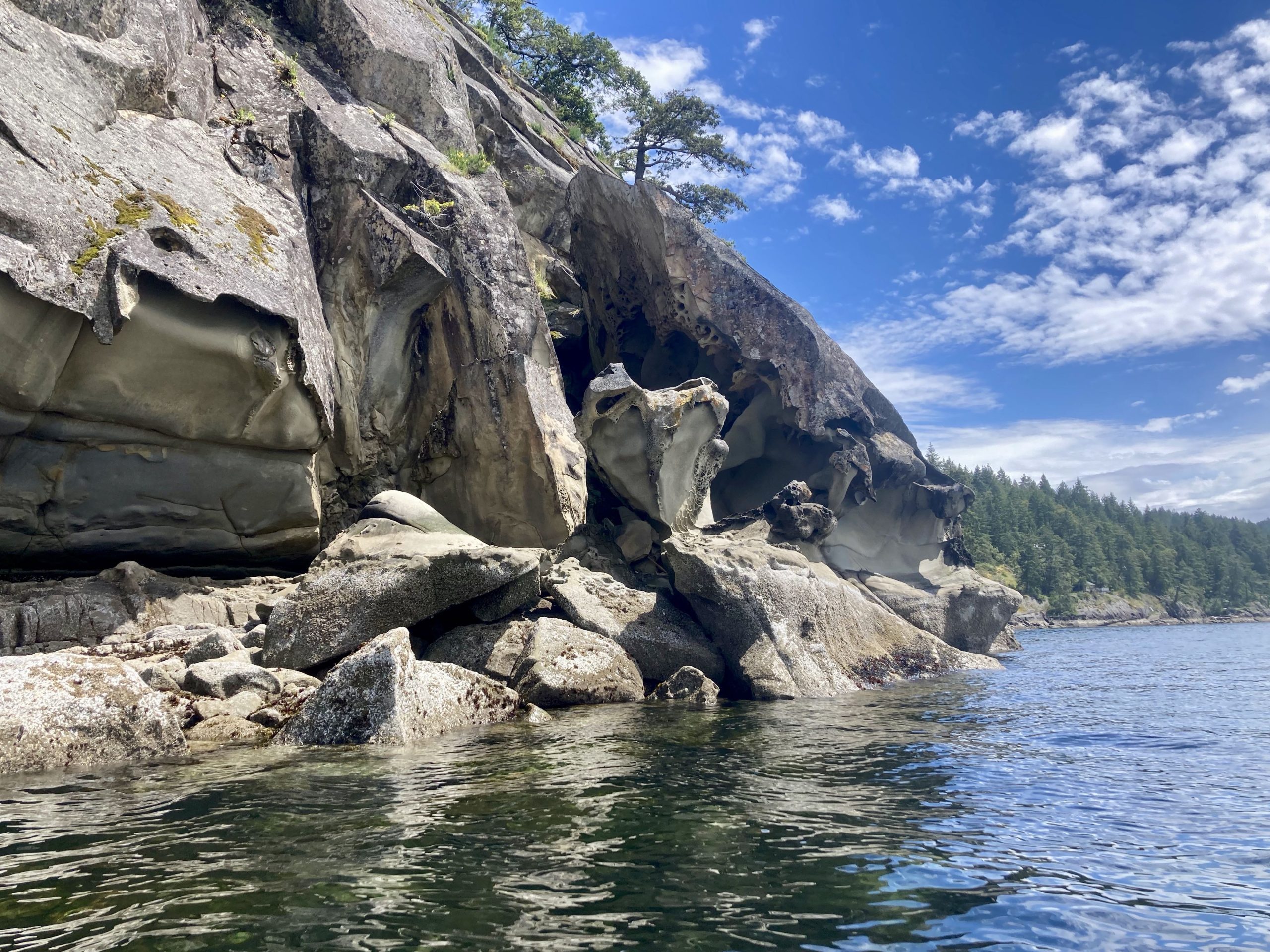 Our lunch spot was a bit north of Blackberry Point and we waited for a while, looking at a Gary Oak to make sure we were hitting the slack, and then we entered the pass. The sandstone cliffs along Valdes were impressive, and we saw many sea stars – which I found encouraging because they had suffered a big die off a few years back.