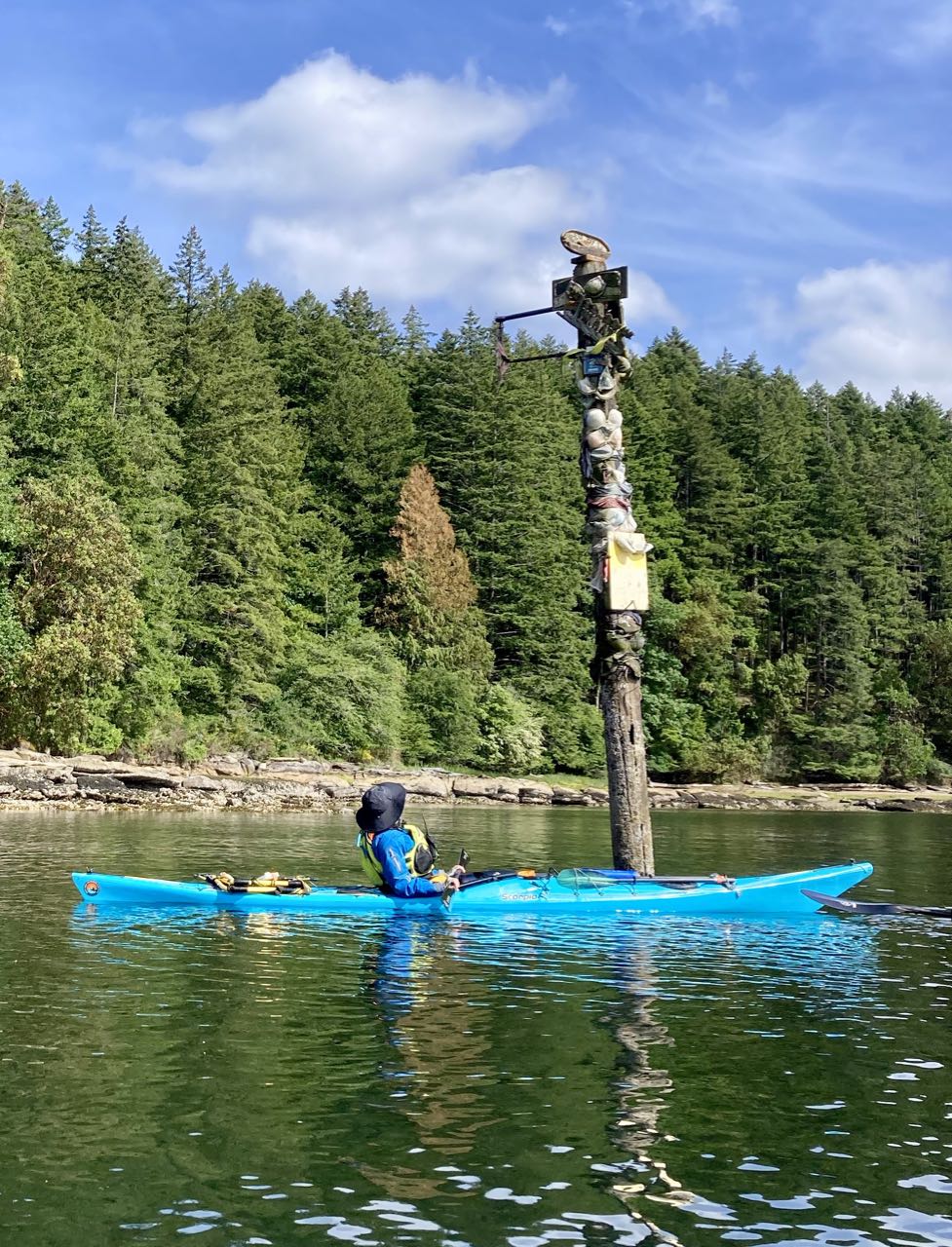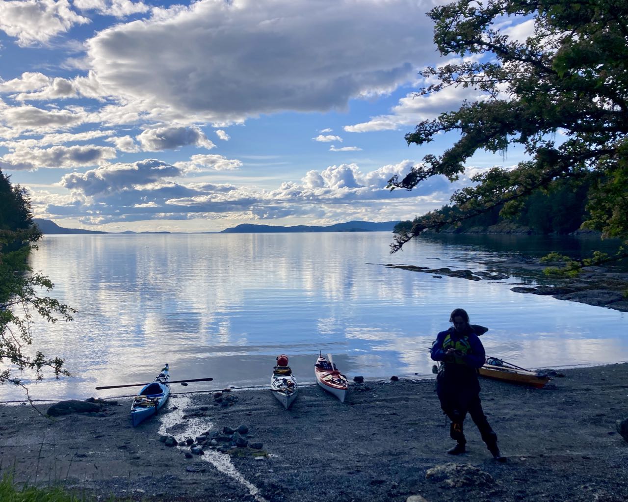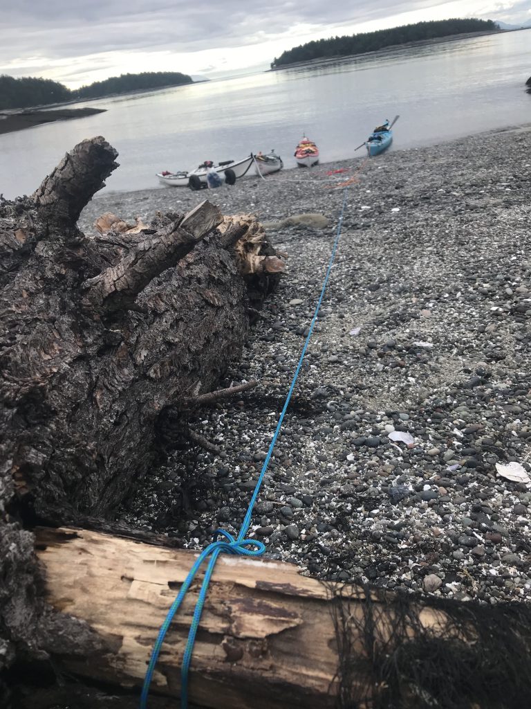 We reached our campground in Descanso Bay, across from Nanaimo, and, according to our original plan, this would be as far north as we would go. Am I hinting enough that things won’t go to plan? There were two potential beaches to land at. One with a nice beach but a bit of a carry to get to the campsites, and one right next to our campsites, that was full of sinking mud and broken, sharp, oyster shells. I noped out of the oyster-beach and was later joined by everyone else when the tide started to go out and threatened to leave everyone’s boat trapped in the mud. We saw otters here and a pileated woodpecker.