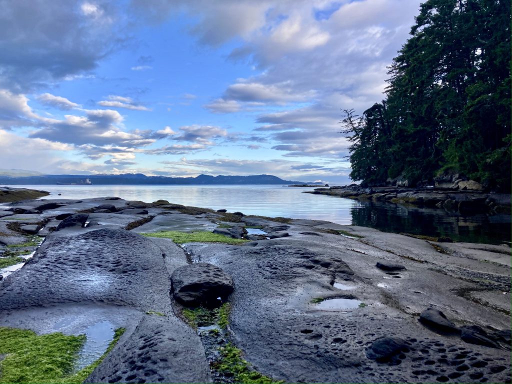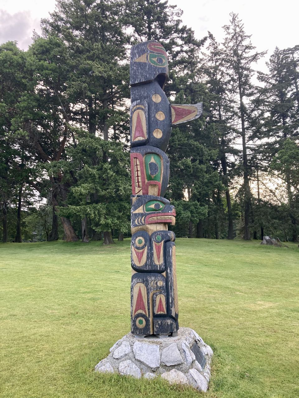 I have no photos from that next day because it was WET. We took the tiny passenger ferry to Nanaimo, ate at a fancy restaurant and did some sightseeing. More importantly – I found a place to drop of the COVID TEST! Finally getting rid of that albatross meant high-fives all around. We stayed in town as long as possible before returning to our very wet campsite. The camp had wood for sale, but we didn’t think we could get it to light, until I thought to ask if we could use the covered shelter right next to their gift shop. They said they used that space for salmon bakes, but since no one was around to go right ahead. They sold us some damp wood and by using that plus their giant pile of discarded cardboard we made ourselves a pretty decent fire.