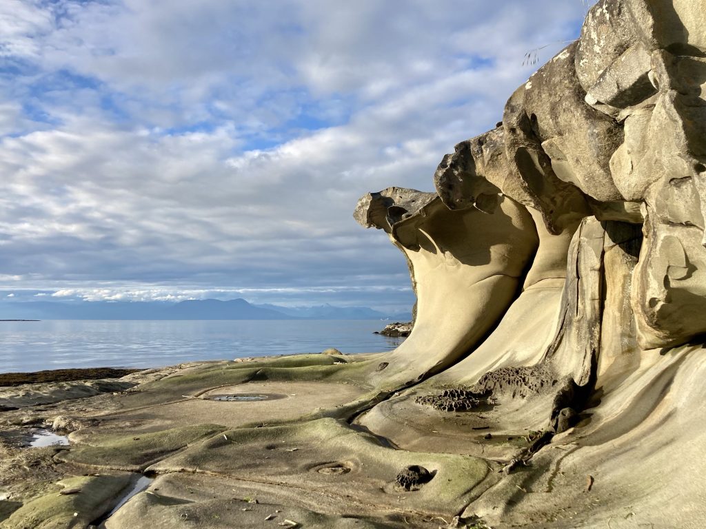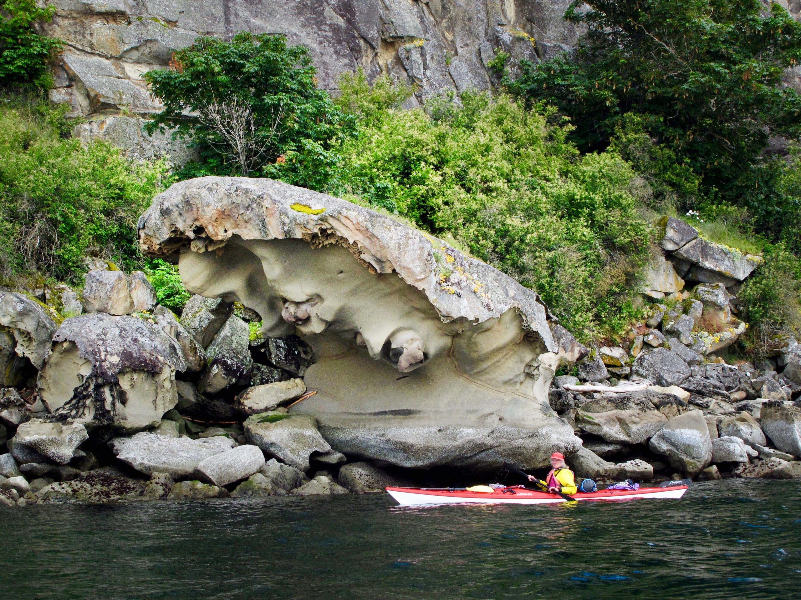 June 5th we packed up at Montague and prepared for a 10 mile paddle along Galiano Island and across to Wallace Island. This is where we got our first look at some of the impressive sandstone sculpture that we would follow for most of the trip, and also, I think, where we first met some of the seals that would keep an eye on us for the rest of the trip.