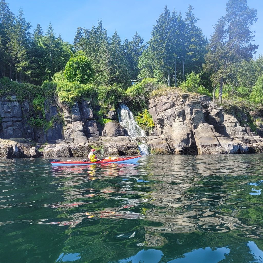 On June 4th I set out with 5 friends from my sea kayaking club on a 9-day trip to the Gulf Islands in BC. This is considered a relatively sheltered area, but it’s still just off the Straight of Georgia and has some big crossings and some areas where we had to time it just right to avoid strong currents. Our plan was to launch from Mayne Island, head north almost to Nanaimo, then return south through False Narrows, around Salt Spring Island, and finally returning to Mayne Island to take the ferry back to Tsawassan, BC. All told, 120 miles. The longest day would be around 18 miles.
