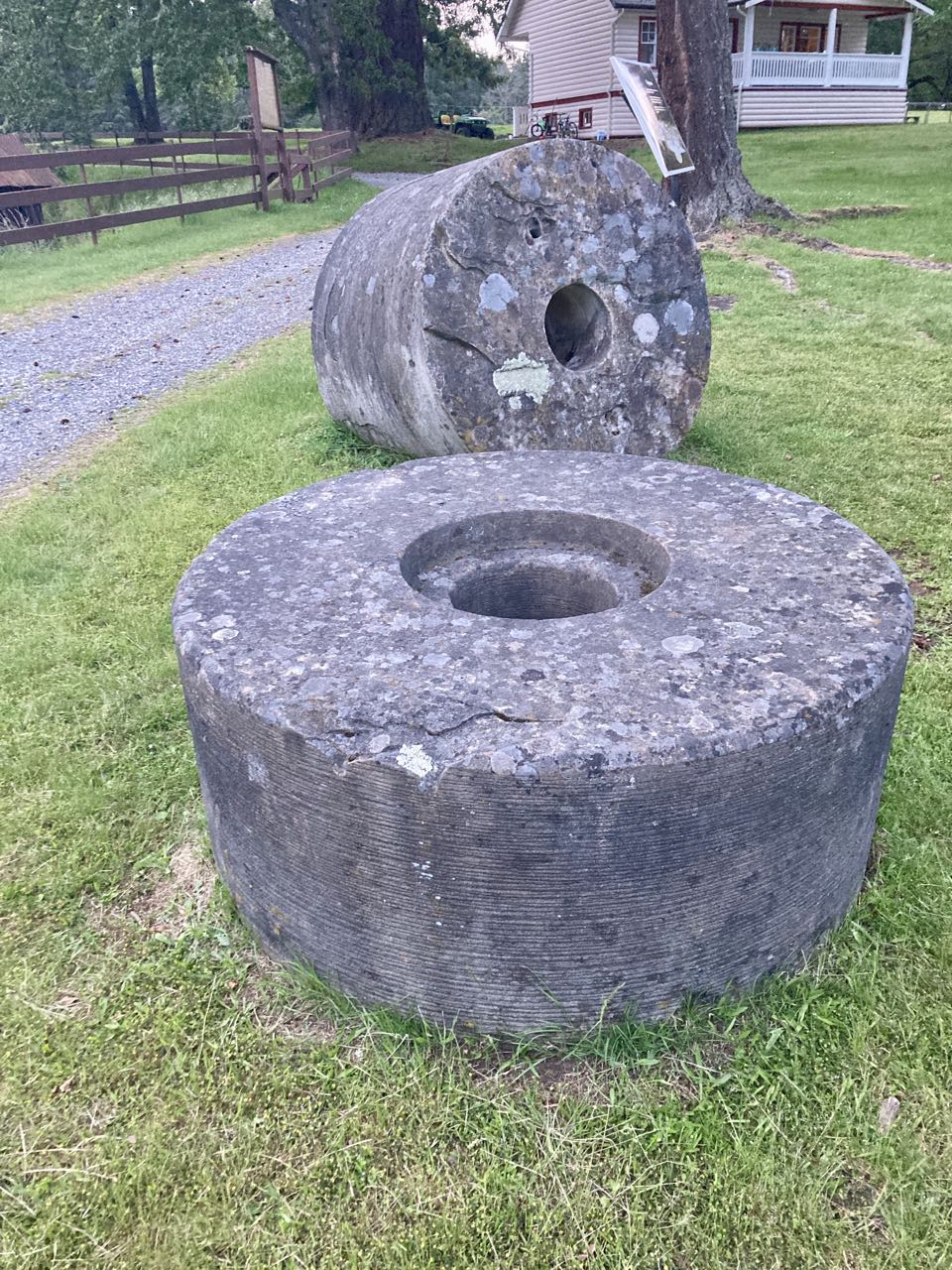 We found camping at the resort but it hadn’t yet fully opened for the season. What this meant in practice was that we pretty much had the run of the place. We set up camp in a big meadow, were told about the white raccoons, and left to explore the hiking paths, millstones and native art. Oh – did I neglect to mention the mysterious post covered with bras in the channel between the island and the mainland? We have no idea what that meant.